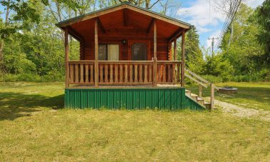 You will find yourself feeling right at home in our Park Model Cabins as they include a kitchen with a refrigerator, stove, microwave and coffee pot, as well as cable TV and a full bathroom. All pots, pans, dishes and silverware are provided for your convenience in the unit. The Park Model Cabins include Heat and air conditioning. Our Park Models have an 8′ covered porch and fire pit with grill grates for cooking. Join us for some of the best cabin camping in Western NY!